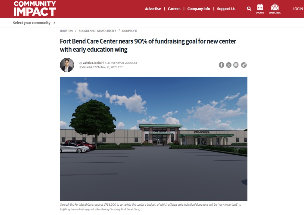 Nonprofit Fort Bend Care Center is planning a $5.6 million facility to advance long-term educational investment on the county’s east side.